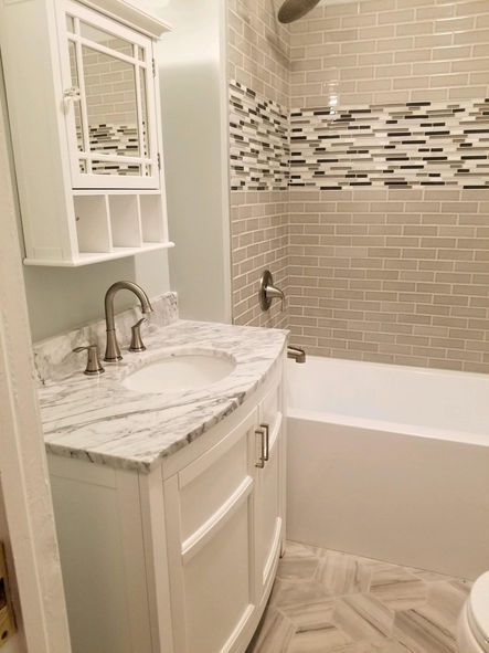 The job included interior painting, bathroom tile repair, painting steps and bannisters